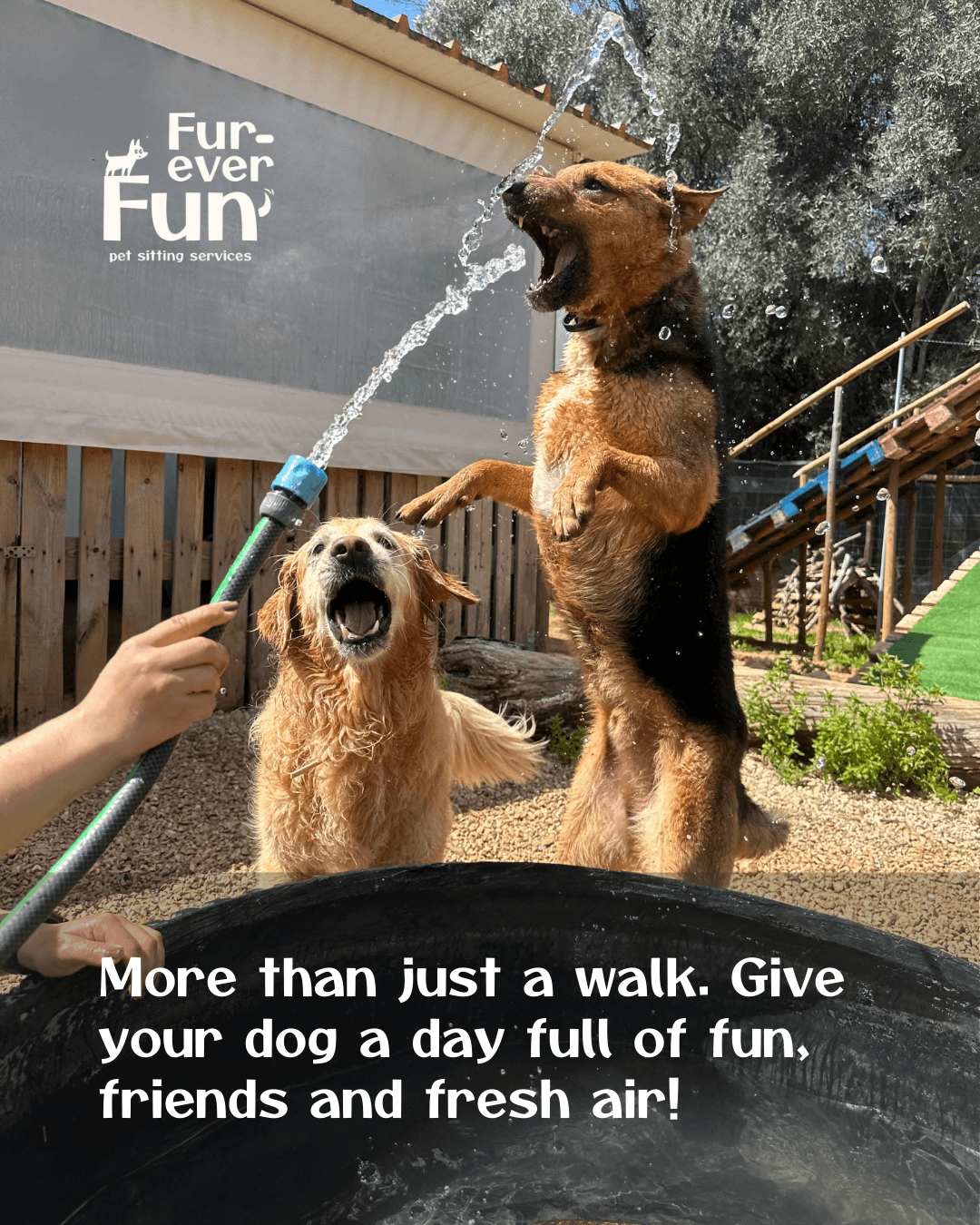"Sammie and Sofia love Furever Fun! Between walks, swims, and playtime, they’re always happy. Erica and João care for them like family — we couldn’t recommend it more!"
